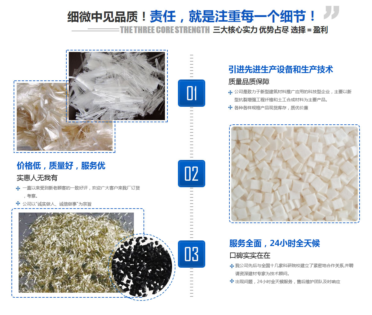 以新型抗裂增強工程纖維和土工合成材料為主要產(chǎn)品